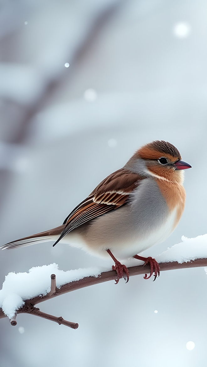 Edytor tapety: Ptak na ośnieżonej gałązce