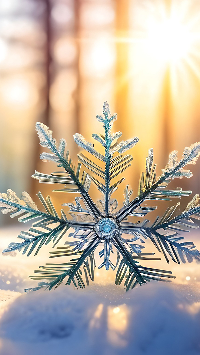 Edytor tapety: Rozświetlona słońcem śnieżynka w śniegu