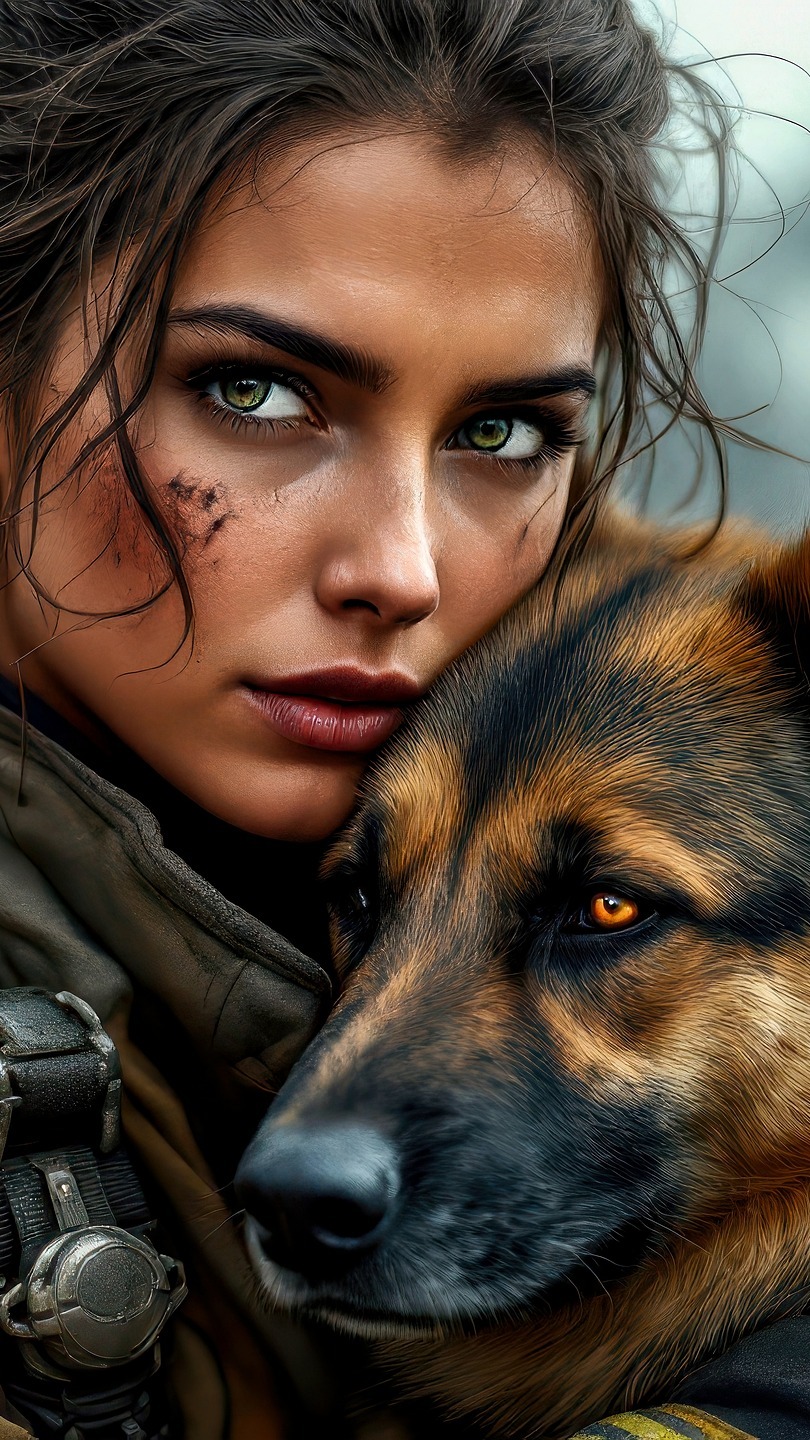 Edytor tapety: Strażaczka z owczarkiem niemieckim