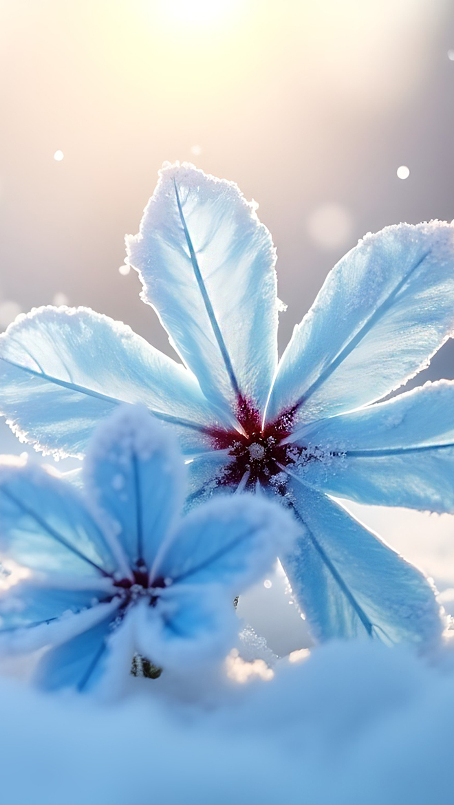 Edytor tapety: Dwa niebieskie kwiaty w śniegu