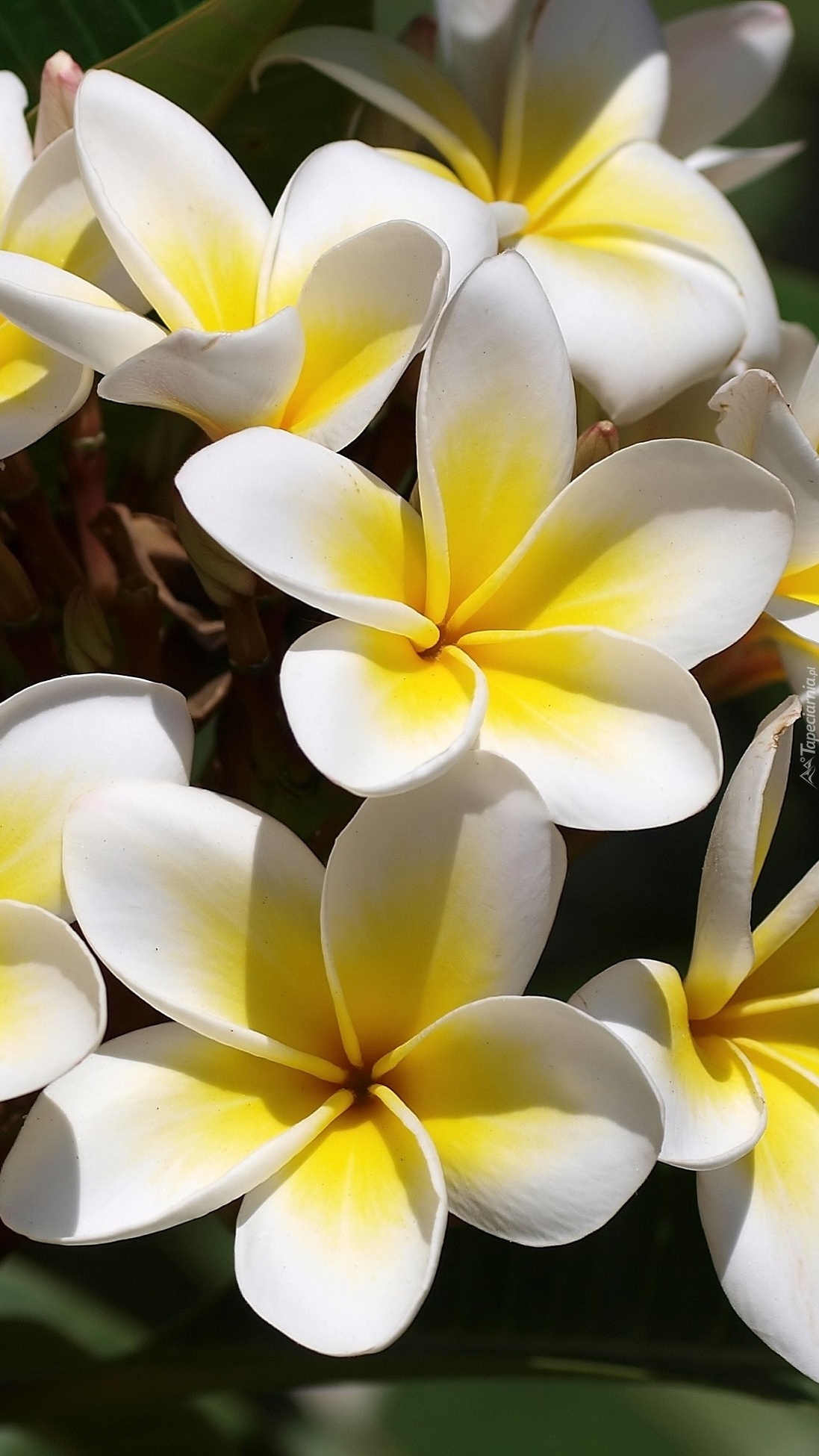 Edytor tapety: Biało-żółte płatki plumerii