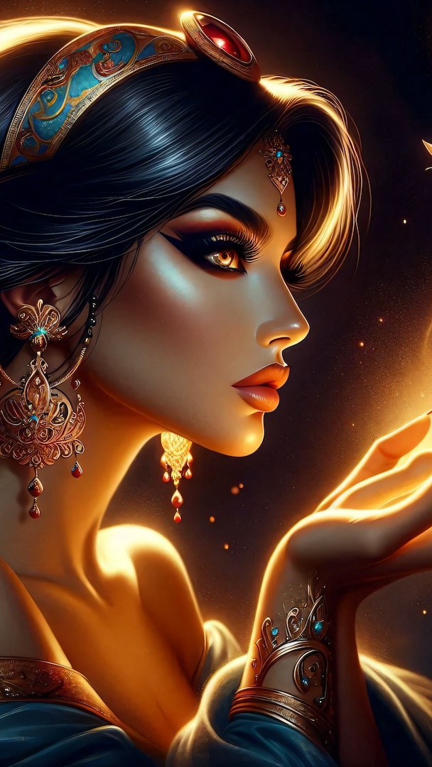 Edytor tapety: Profil ciemnowłosej kobiety w grafice