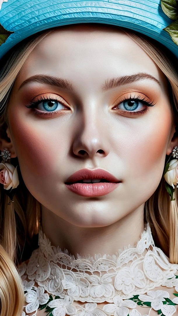 Edytor tapety: Niebieskooka kobieta w niebieskim nakryciu głowy
