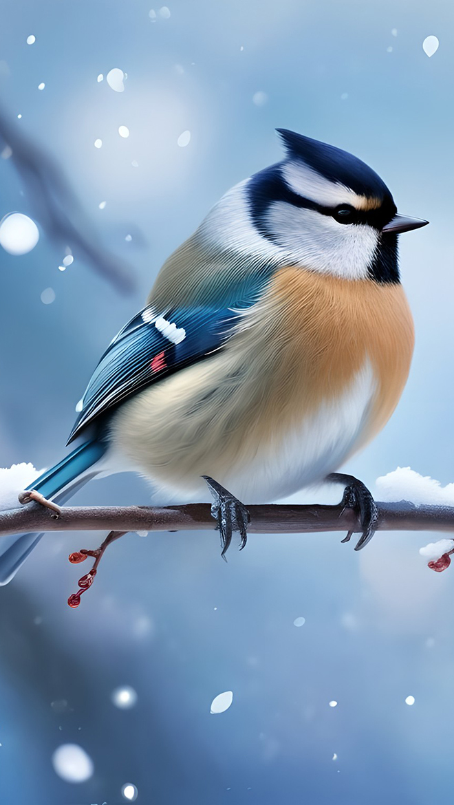 Edytor tapety: Sikorka na ośnieżonej gałązce
