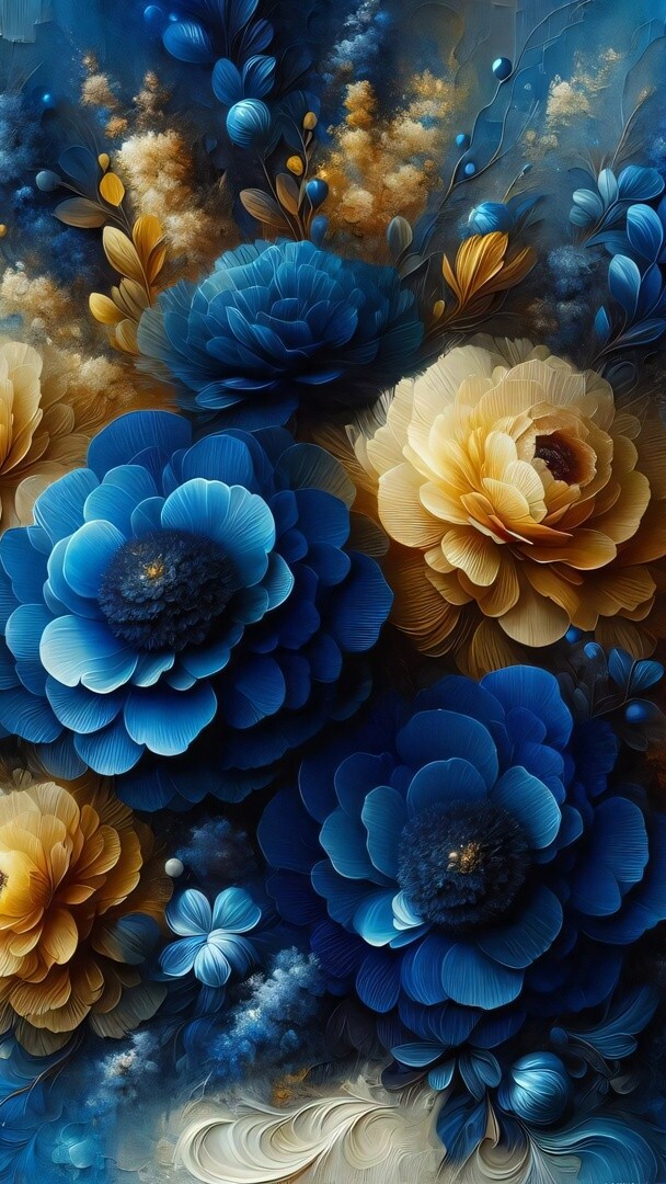 Edytor tapety: Niebieskie i żółte kwiaty w grafice