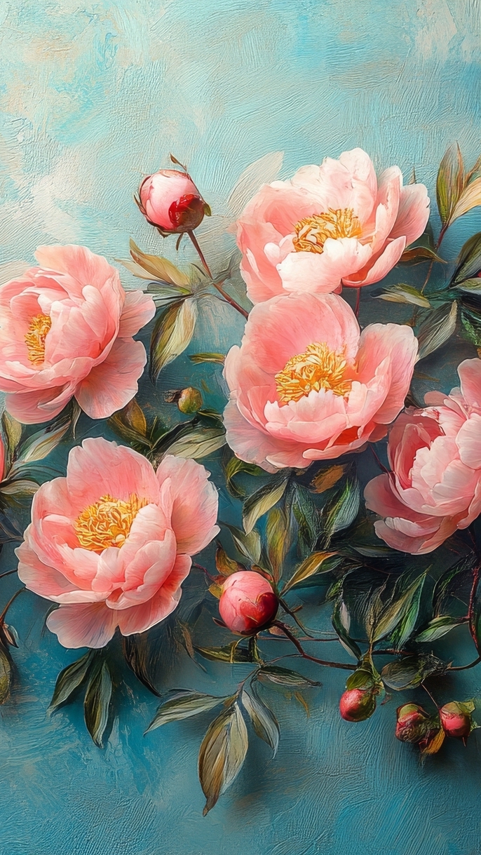 Edytor tapety: Różowe piwonie z pąkami w grafice