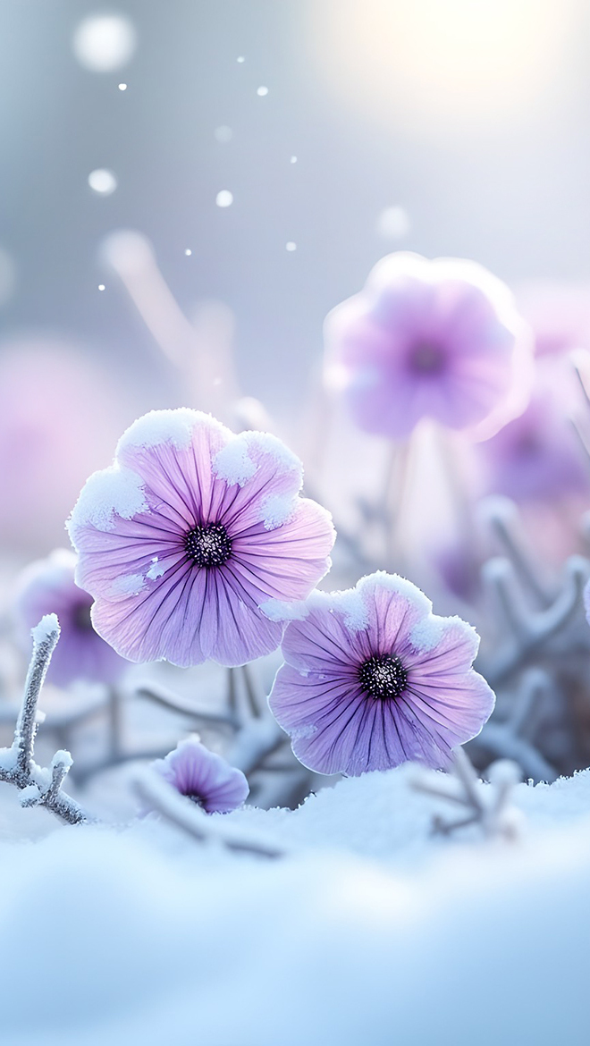 Edytor tapety: Jasnofioletowe kwiaty w śniegu