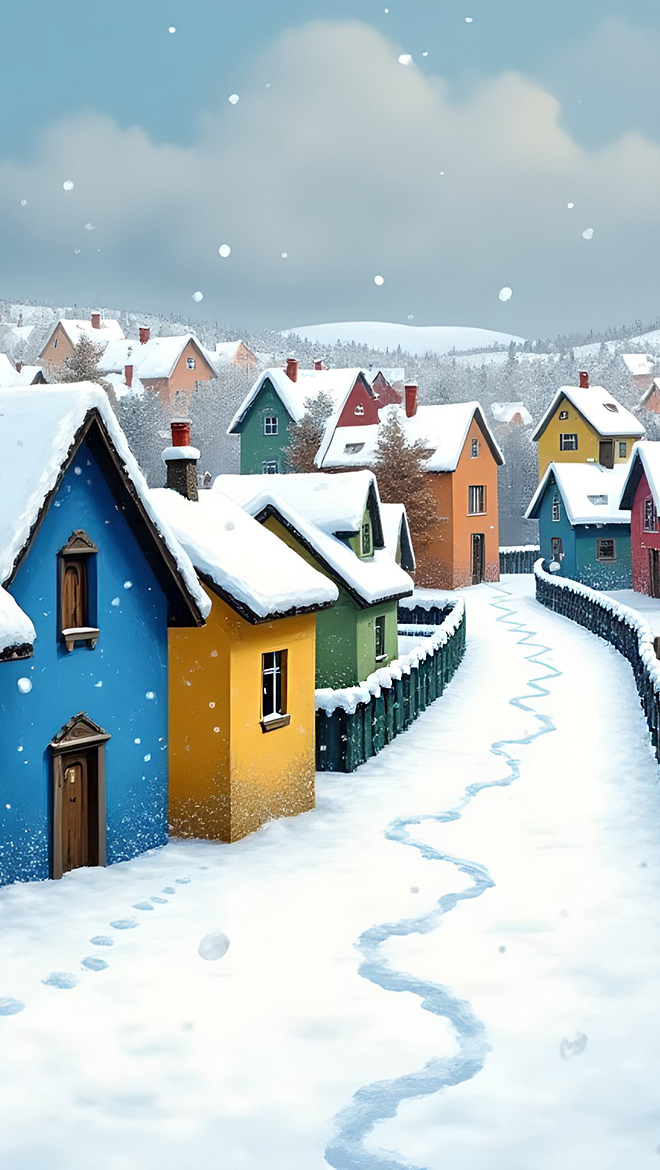 Edytor tapety: Kolorowe domy przy zaśnieżonej ulicy