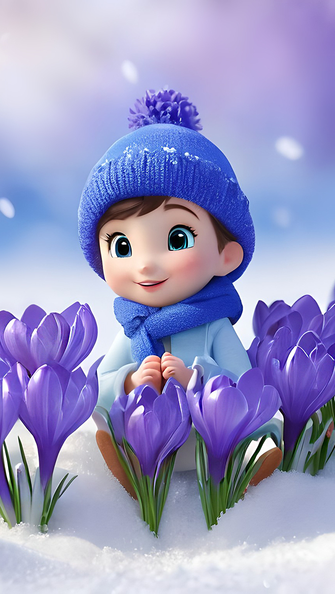 Edytor tapety: Grafika z chłopcem wśród krokusów