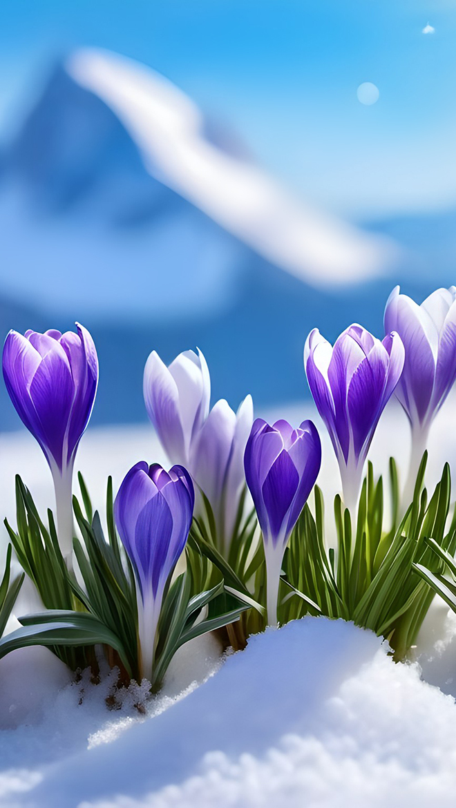 Edytor tapety: Rozkwitające krokusy w śniegu
