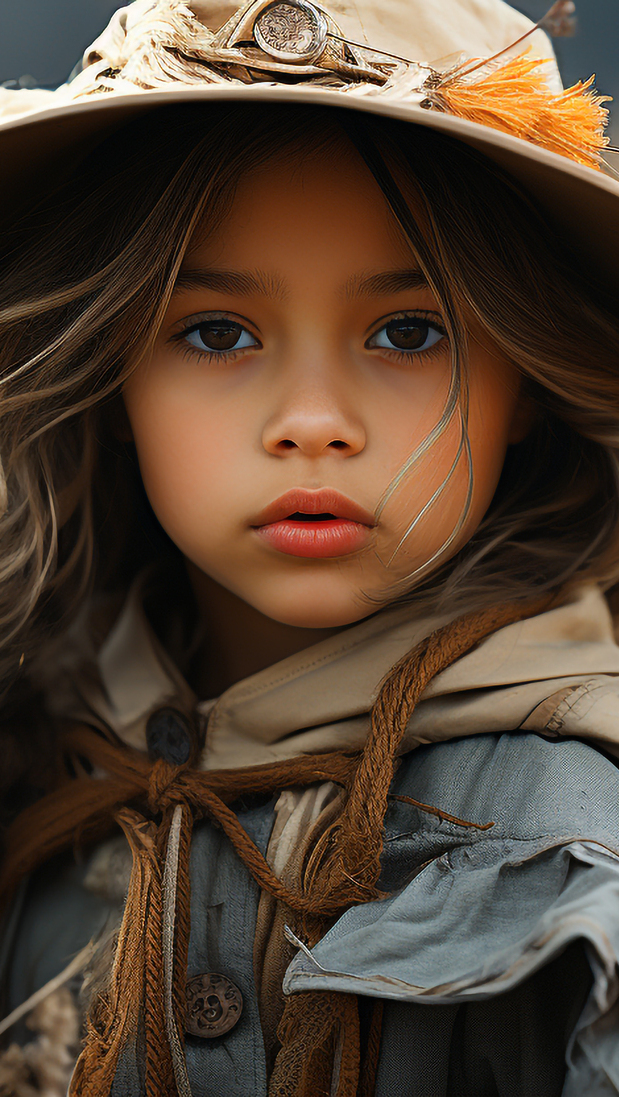 Edytor tapety: Długowłosa dziewczynka w kapeluszu i kurtce