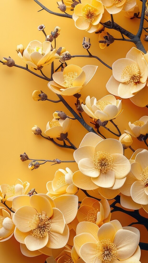 Edytor tapety: Ukwiecone żółtymi kwiatami gałązki