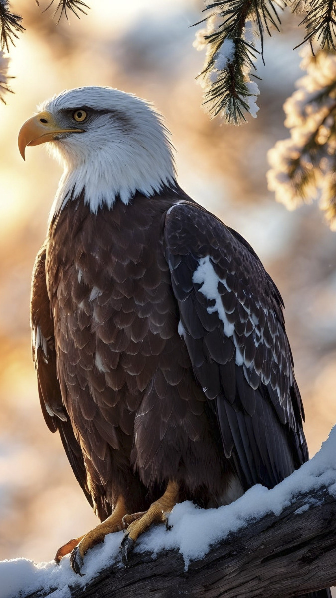 Edytor tapety: Bielik amerykański na ośnieżonym konarze