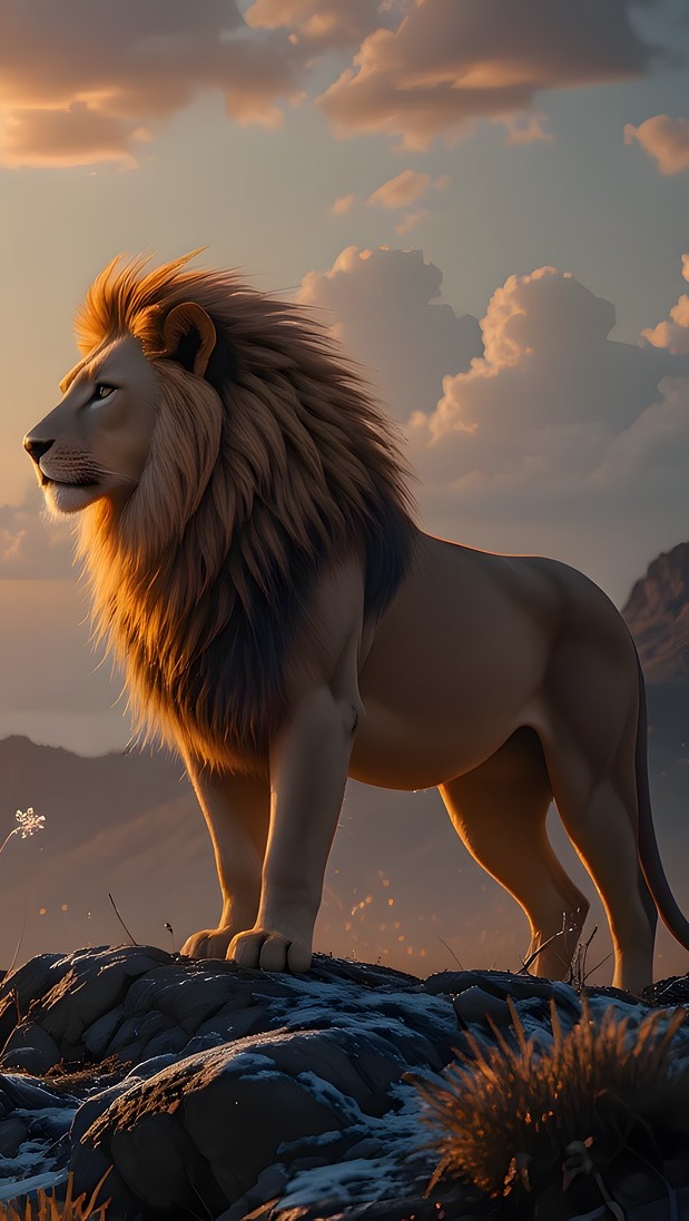 Edytor tapety: Lew na skale