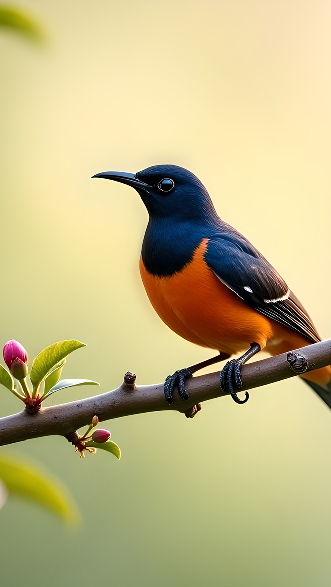 Edytor tapety: Czarno-pomarańczowy ptak na gałązce