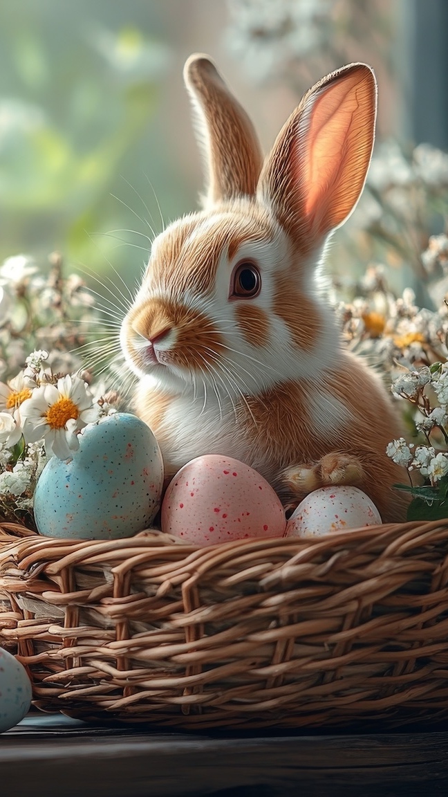 Edytor tapety: Królik i pisanki w koszyczku