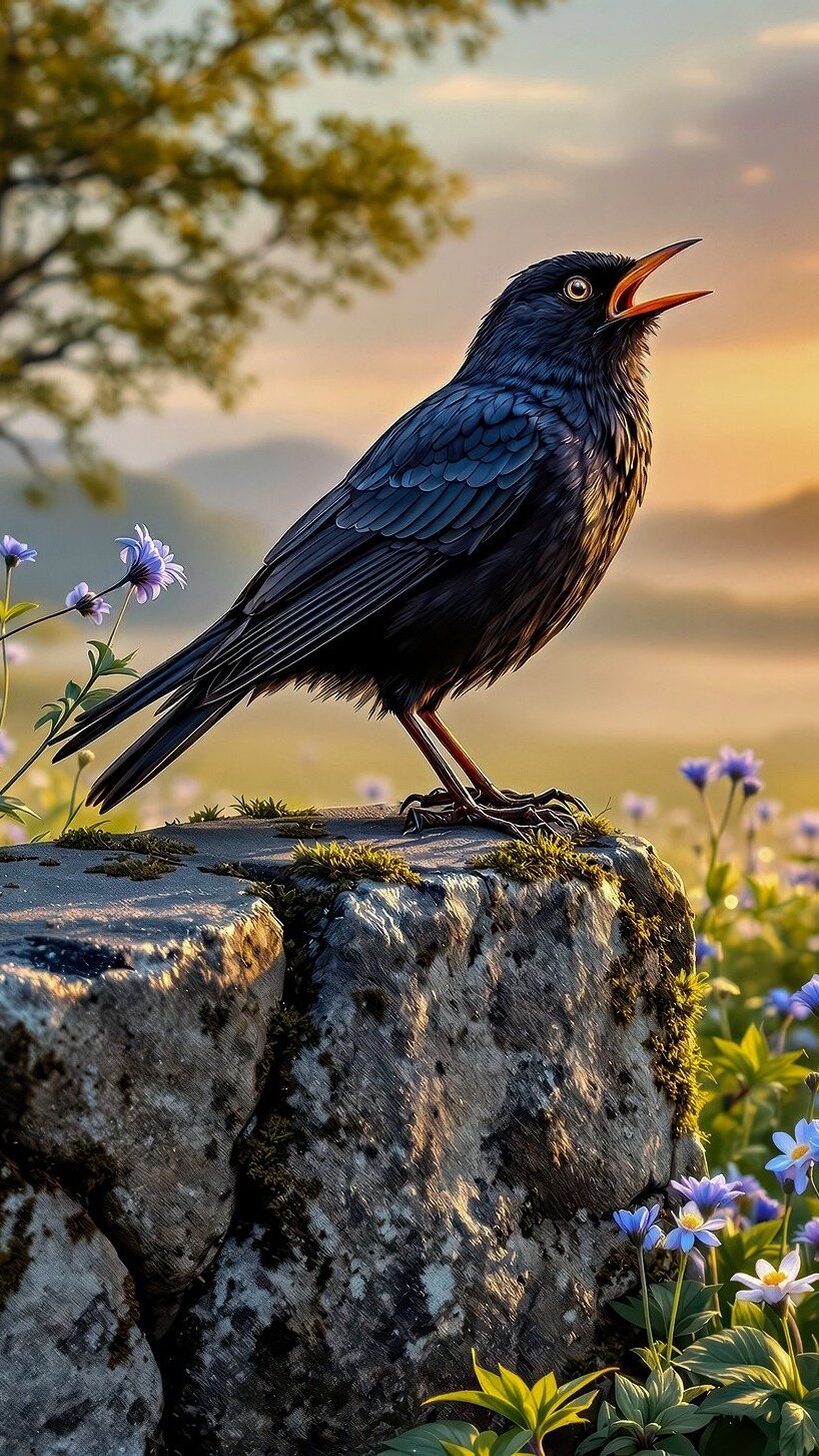 Edytor tapety: Kos stojący na kamieniu