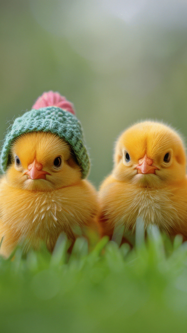 Edytor tapety: Dwa kurczaczki w trawie