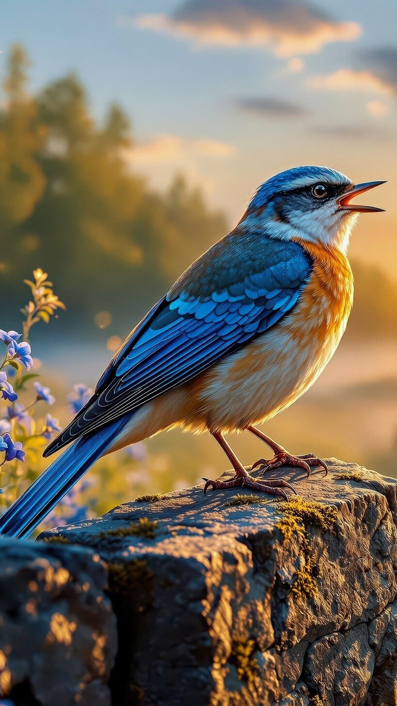 Edytor tapety: Niebiesko-brązowy ptak stojący na kamieniu