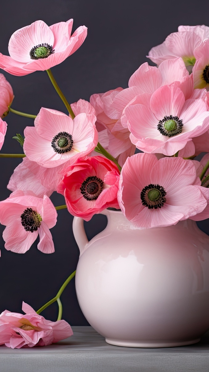 Edytor tapety: Różowe kwiaty w białym dzbanku