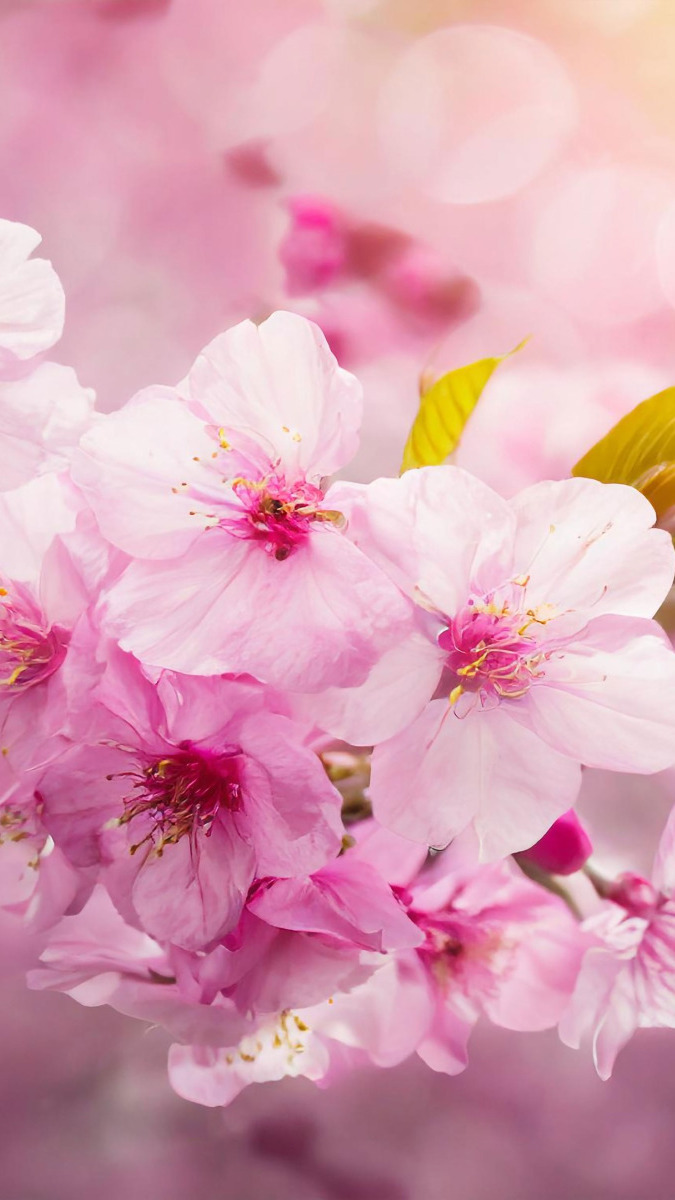 Edytor tapety: Różowe kwiaty drzewa owocowego na gałązce