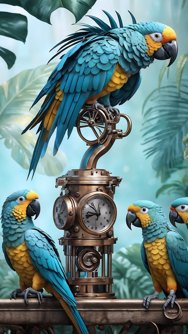 Edytor tapety: Papugi ary na barometrze