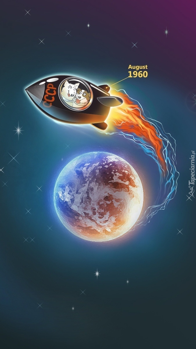 Edytor tapety: Pieski w rakiecie lecące w kosmos