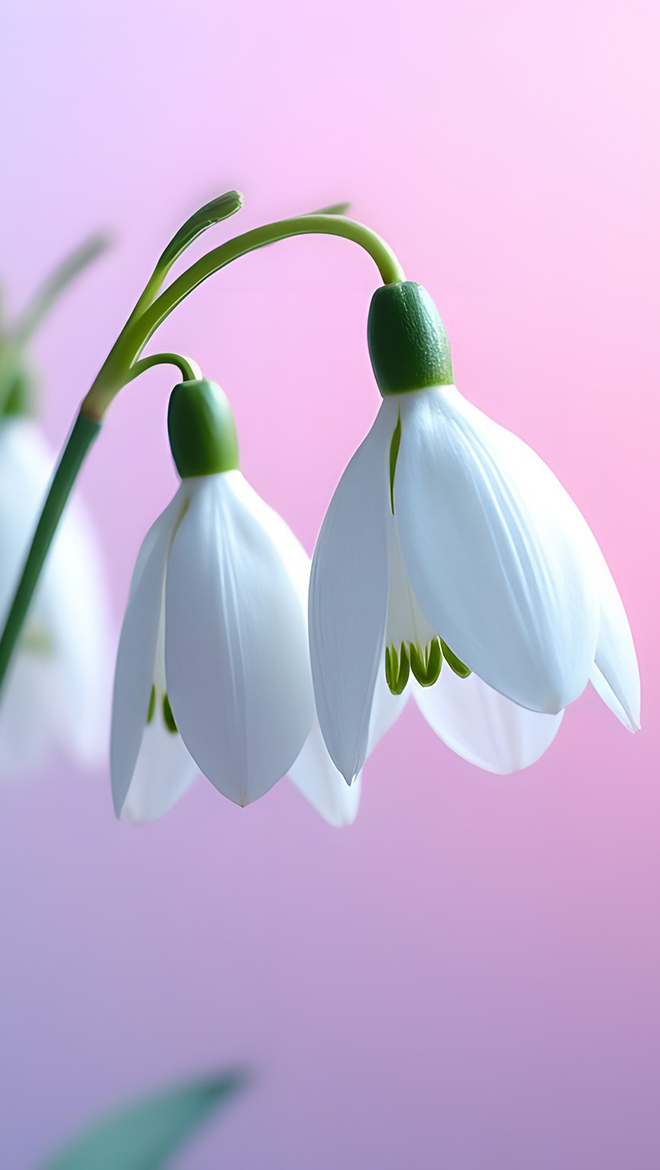 Edytor tapety: Dwa pochylone przebiśniegi na liliowym tle