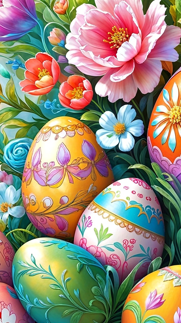 Edytor tapety: Kolorowe pisanki i kwiaty w grafice