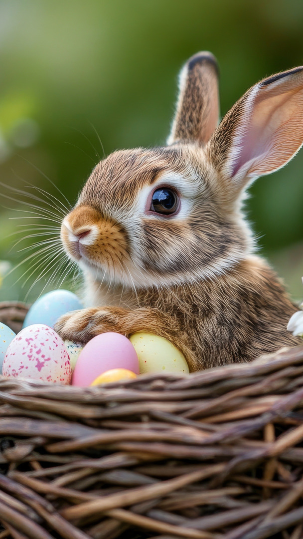 Edytor tapety: Królik z pisankami w koszyku