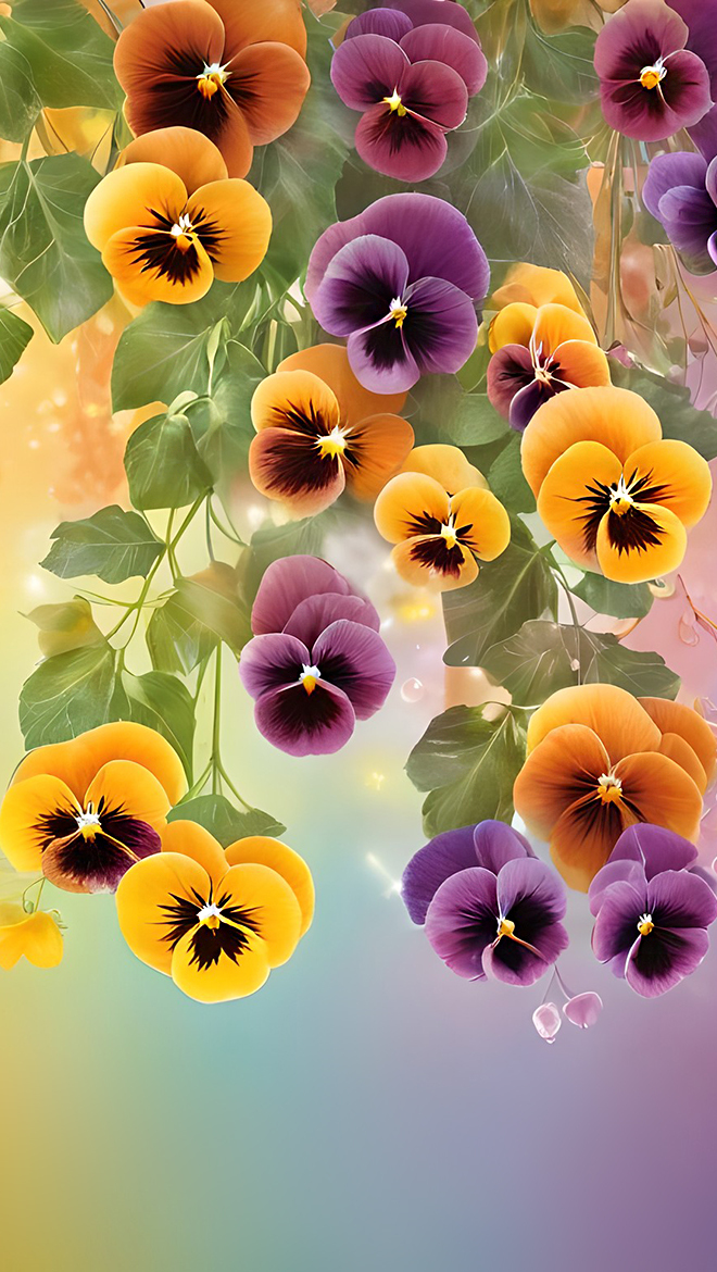 Edytor tapety: Kolorowe bratki na wiszących liściach