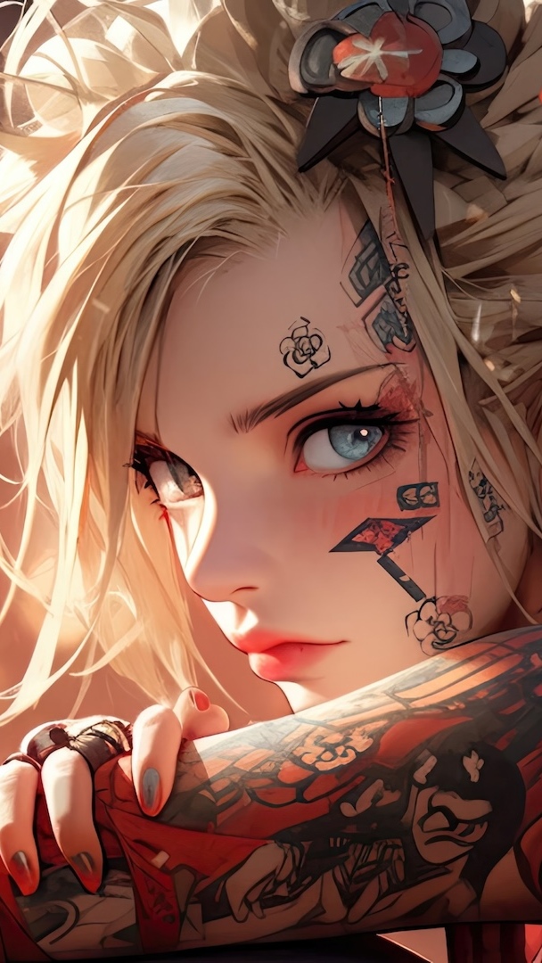 Edytor tapety: Blondynka z tatuażami w anime