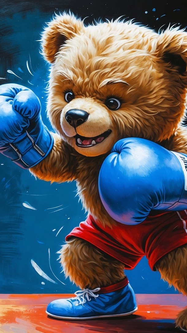 Edytor tapety: Miś bokser w niebieskich rękawicach