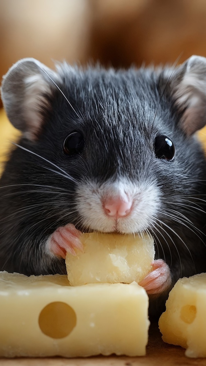 Edytor tapety: Szara mysz z kawałkiem żółtego sera