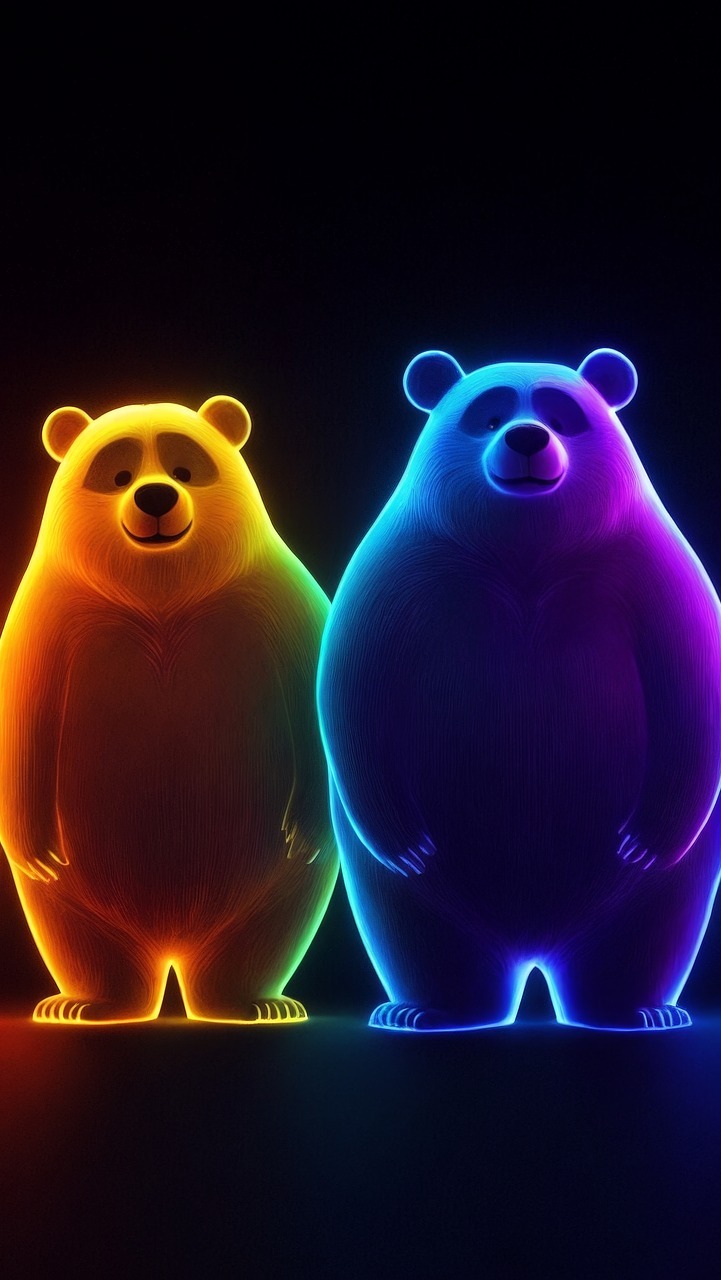 Edytor tapety: Dwa niedźwiedzie podświetlone kolorowym neonem