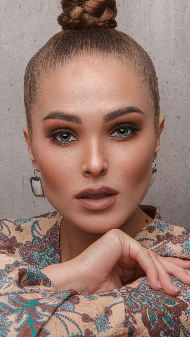 Edytor tapety: Twarz kobiety z upiętymi włosami
