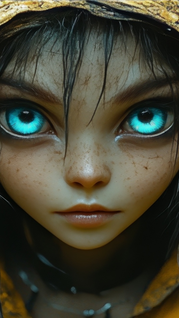 Edytor tapety: Twarz niebieskookiej dziewczyny w grafice