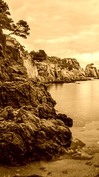 Edytor tapety: Drzewa na skałach na wybrzeżu Costa Brava