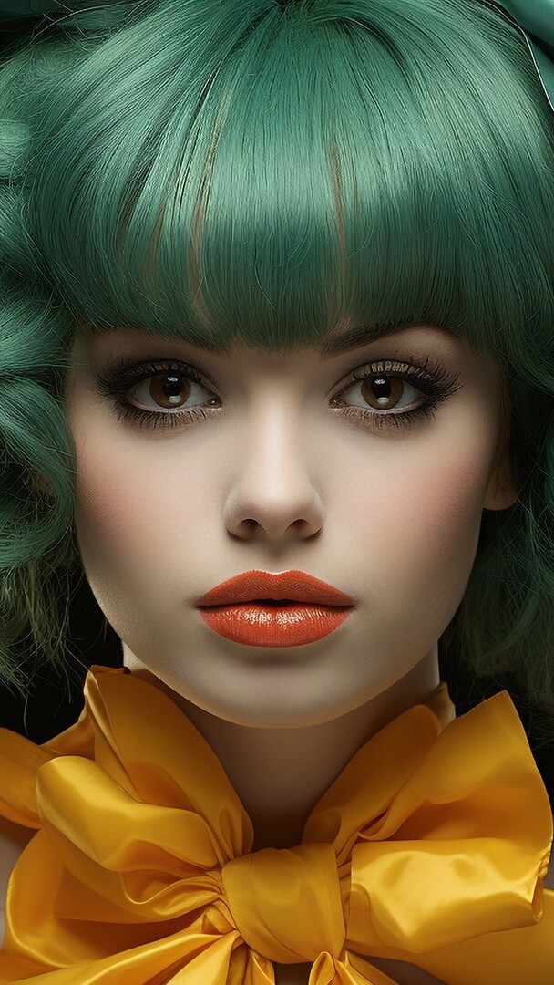 Edytor tapety: Twarz kobiety z zielonymi włosami