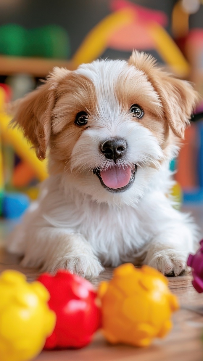 Edytor tapety: Szczeniak i kolorowe piłki