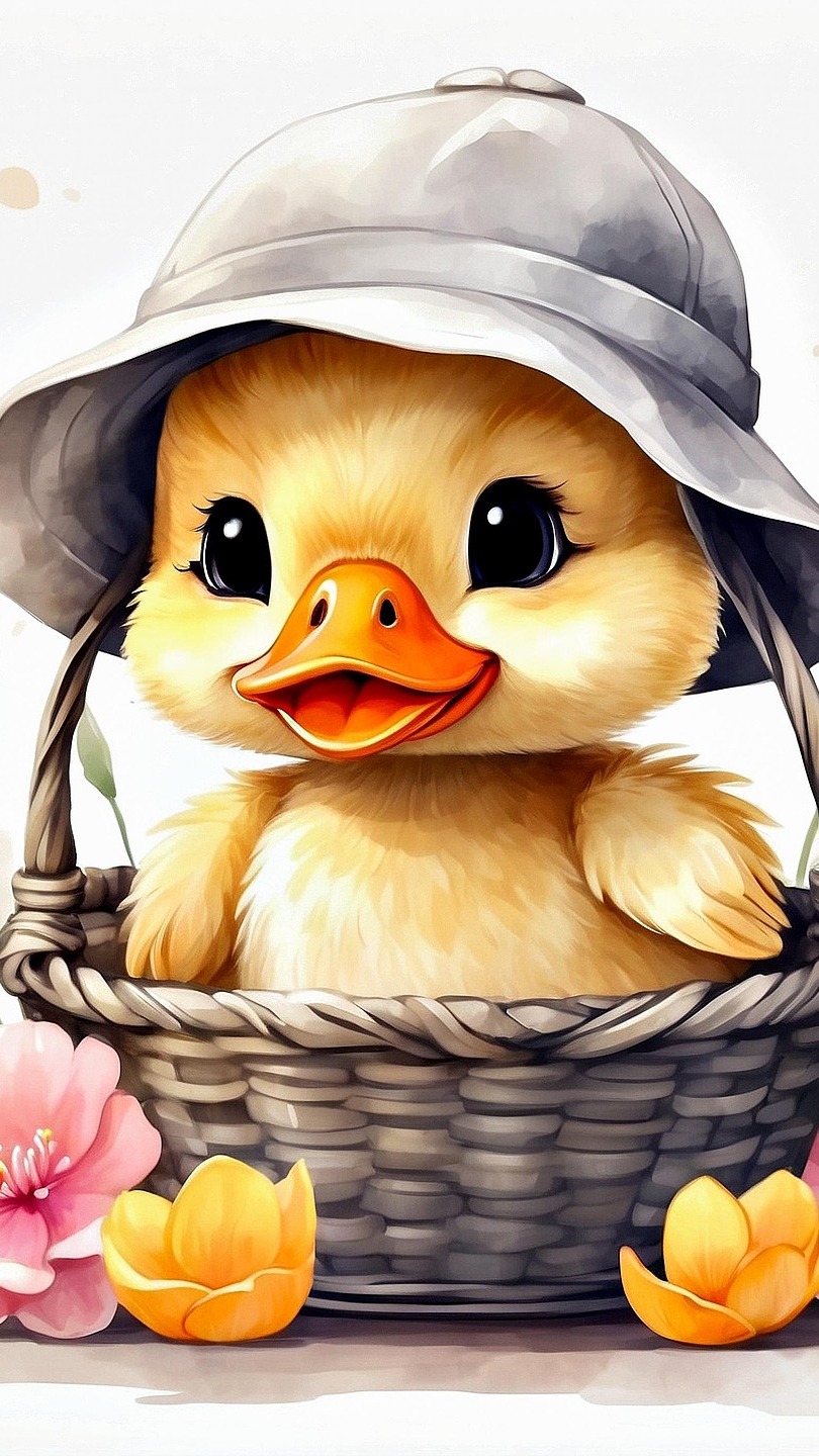 Edytor tapety: Kaczuszka w czapce w koszyku