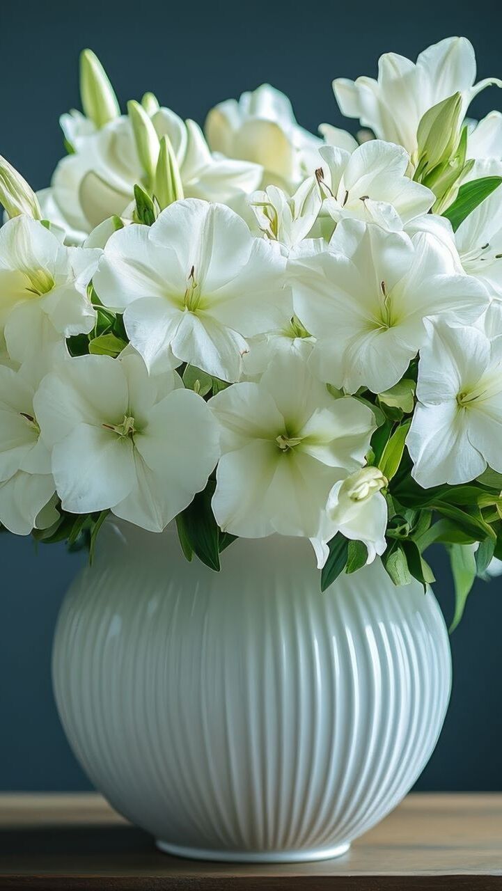 Edytor tapety: Bukiet białych kwiatów w białym wazonie