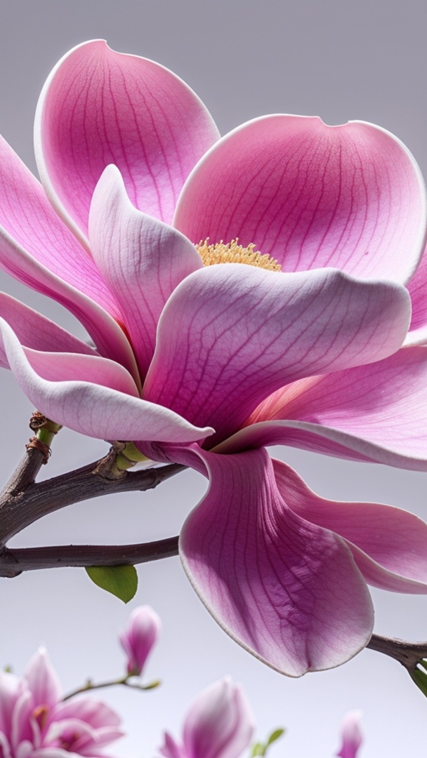 Edytor tapety: Kwiat rozwiniętej różowej magnolii w zbliżeniu