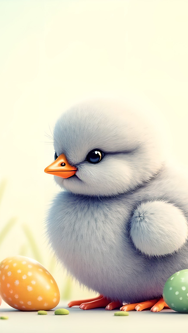 Edytor tapety: Szary kurczak i pisanki w kropki