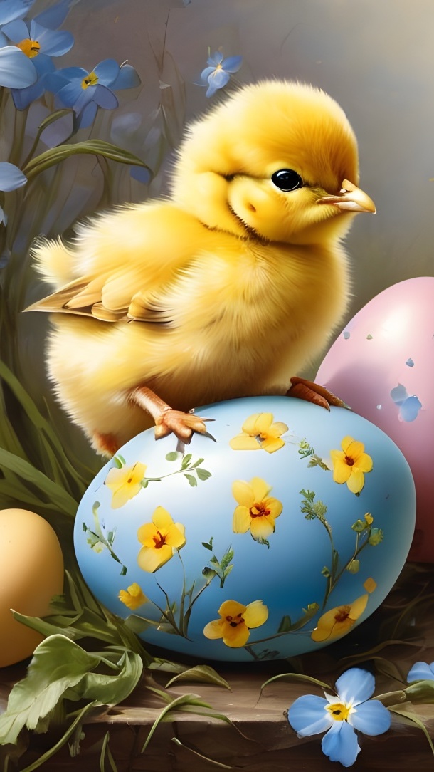 Edytor tapety: Kurczaczek na kolorowej pisance