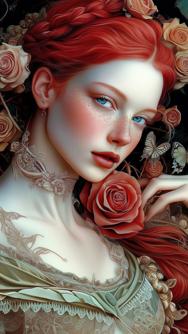 Edytor tapety: Rudowłosa dziewczyna z piegami na twarzy