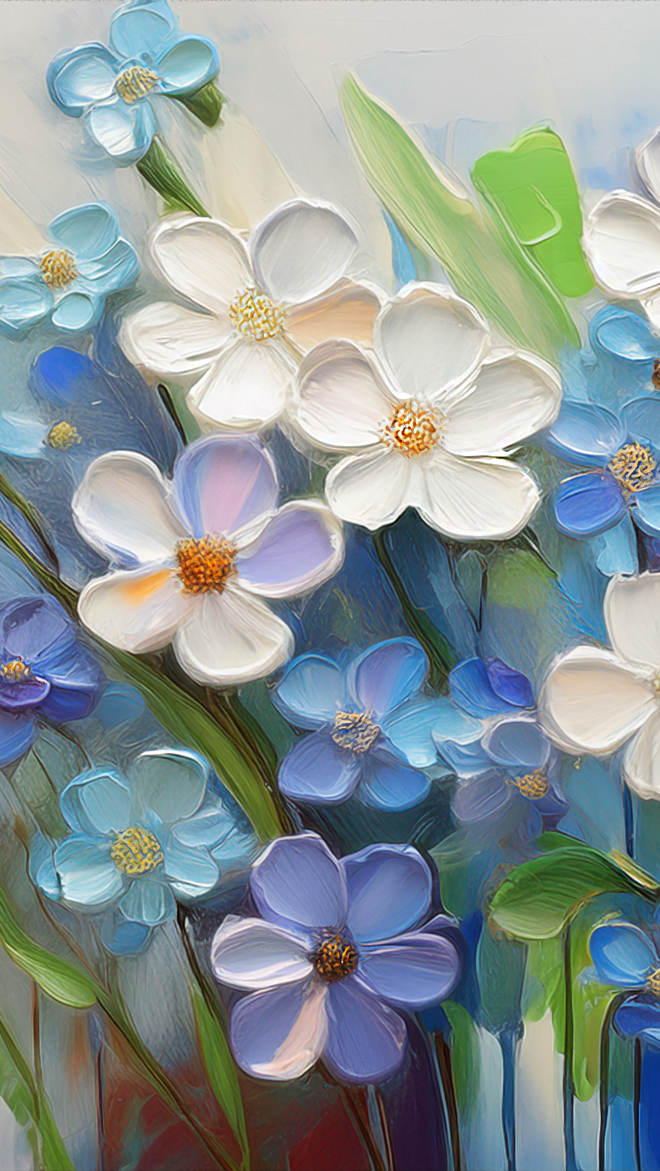 Edytor tapety: Grafika z białymi i niebieskimi kwiatami