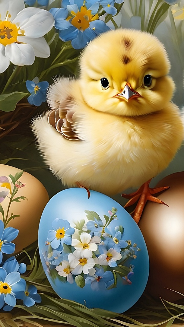 Edytor tapety: Kurczak na kolorowych pisankach