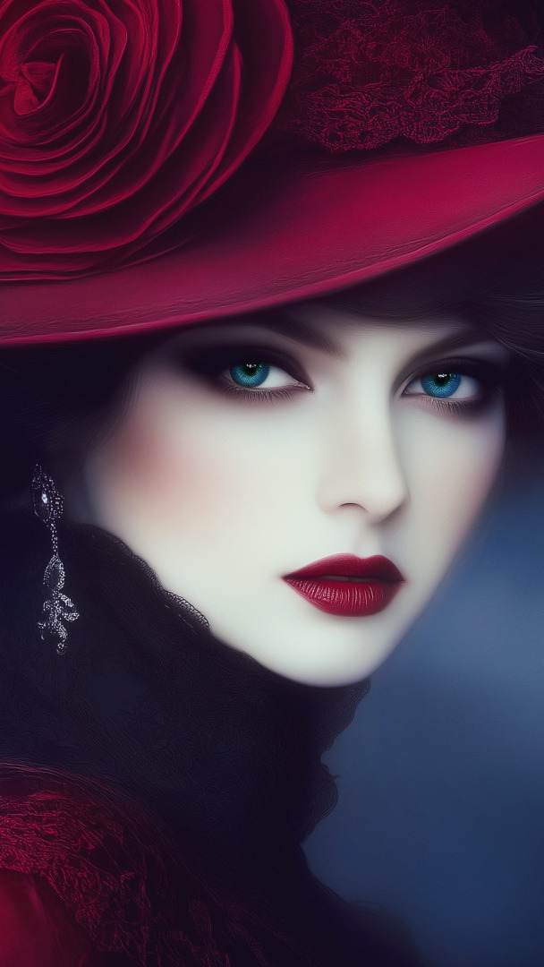 Edytor tapety: Dziewczyna w ciemnoczerwonym kapeluszu