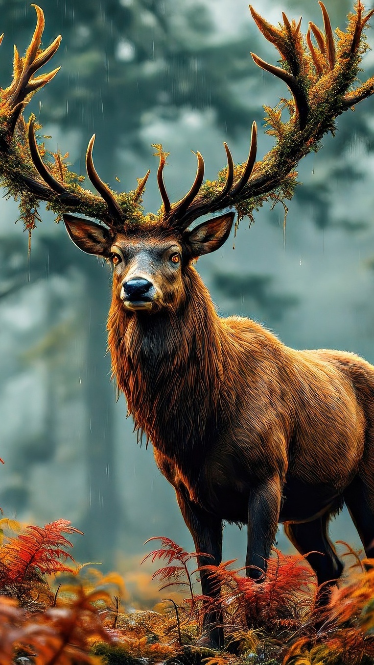 Edytor tapety: Jeleń wśród pożółkłych paproci